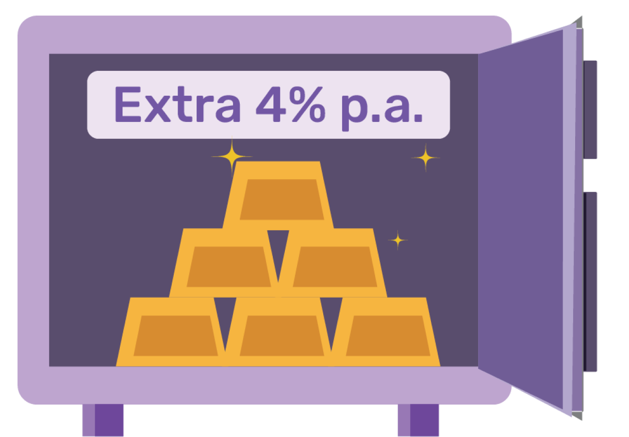 Get assured +4% p.a. extra gold grams on your gold savings. No lock in.